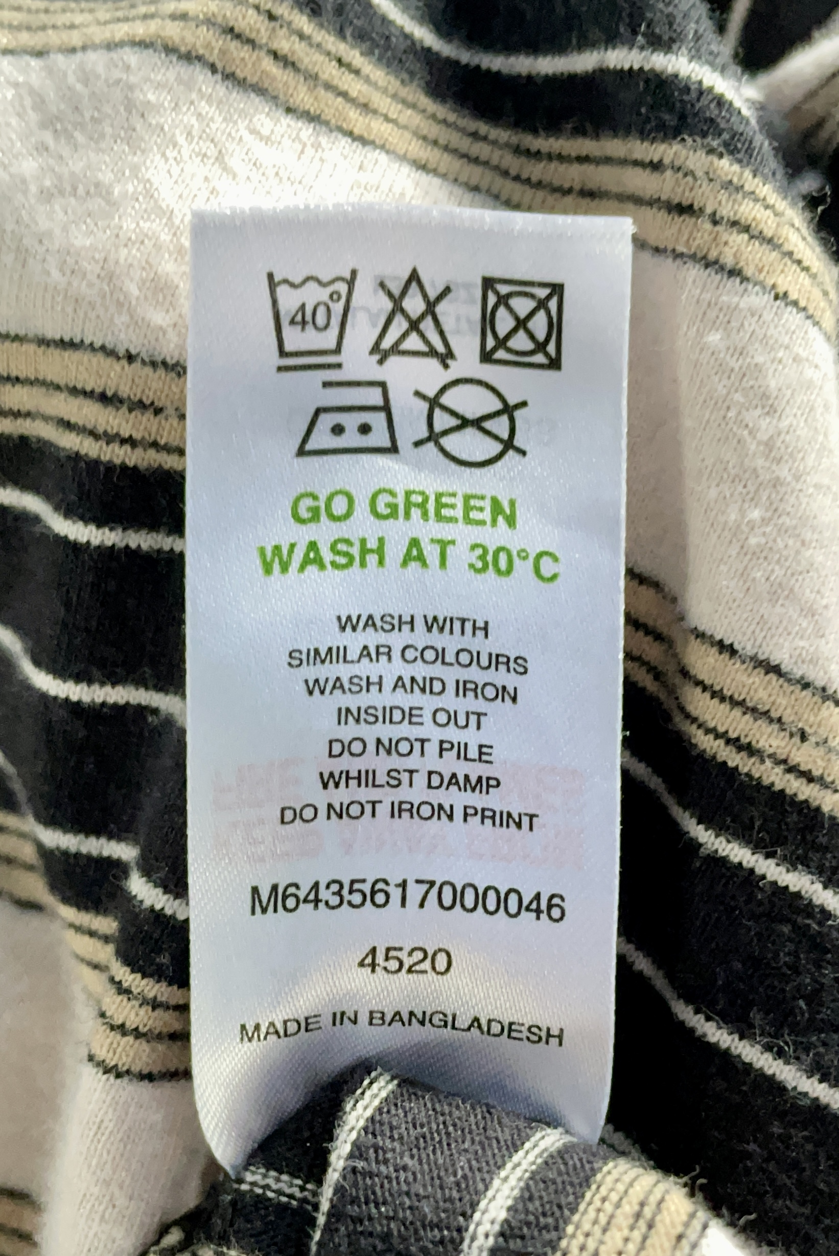 I know I keep mentioning wash labels but many modern clothes have restricted wash instructions that most people just don't look at or understand. For example, here is the wash label from just one of my ordinary t-shirts.
