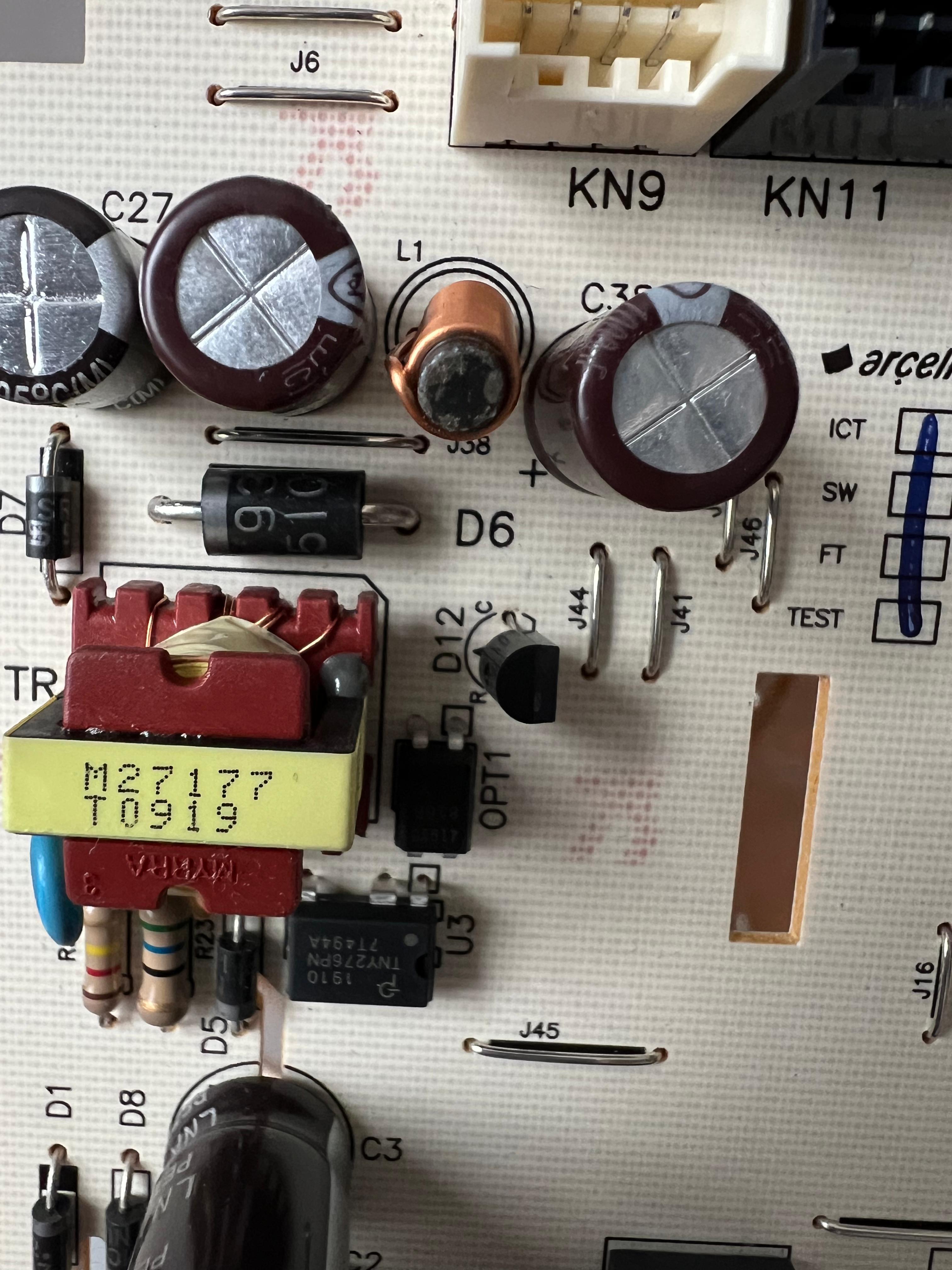 Hello all, my washer dryer BEKO WDIY854310F 2018 model doesn't turn on. I've seen great advice on this forum about the failing diodes, so I've removed the PCB and tested the diodes. I was expecting the D7 to be faulty, but it reads .315v and OL in the opposite direction. That made me think the D7 is ok. I've tested all diodes and find out D6 is faulty (.000 readings in both directions). Could you please help me choose the right replacement for the D6? What should I look for? Thank you